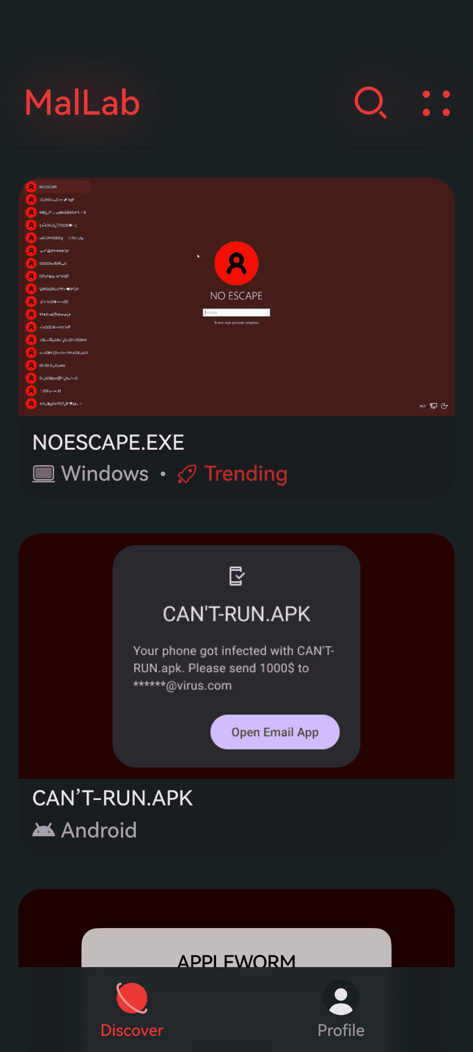 A fictional app where you can download malware and similar